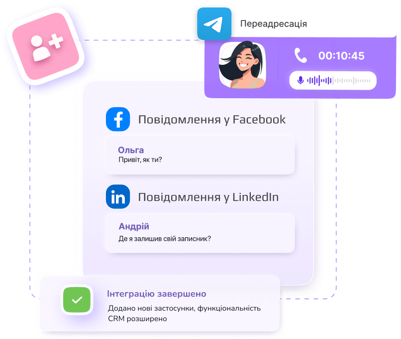 Фіксація та зберігання всіх контактів: дзвінки, повідомлення та електронні листи, пов’язані з кожним клієнтом.